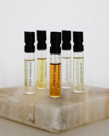 Explore five distinct creations from Annindriya’s Amsterdam-based collection with this discovery set, thoughtfully composed for easy personal exploration, gifting, or travel convenience.