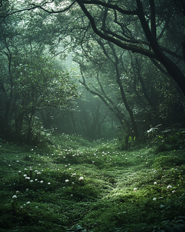 In the dappled shade of Artemis’ forest, you walk where morning’s light dances with dew and mist, unveiling the velvet green of the earth.