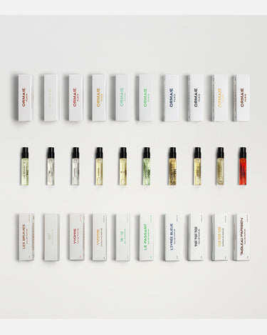 The ORMAIE Discovery Set is a curated box of ten samples that invites you to experience the artistry of a French, family-owned house, known for working only with natural ingredients and a poetic touch.