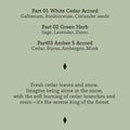 Top: White Cedar Accord, Galbanum, Frankincense, Coriander Seeds