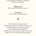 Top: Litsea Cubeba, Pink Pepper, Olibanum, Spearmint, Rosemary