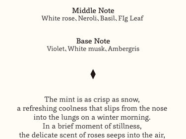 Mint Rose captures a refreshing crispness reminiscent of snow, delivering a cool sensation that feels invigorating and clean.