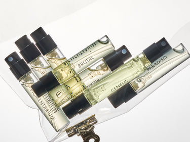 Each miniature bottle is a portal: ORATORIO’s silent drama, AZABACHE CHAPTER 2’s shadowed intrigue, MURMUR’s whispered secrets, PARADISO’s sunlit escape, EROTIKON’s velvet nocturne, GENESIS’s first breath, and AD LIBITUM’s improvisational thrill. Pigmentarium, born in Prague and known for weaving stories through olfactory artistry, invites you to curate your own narrative, choosing your aura as you would a costume for the evening’s masquerade.